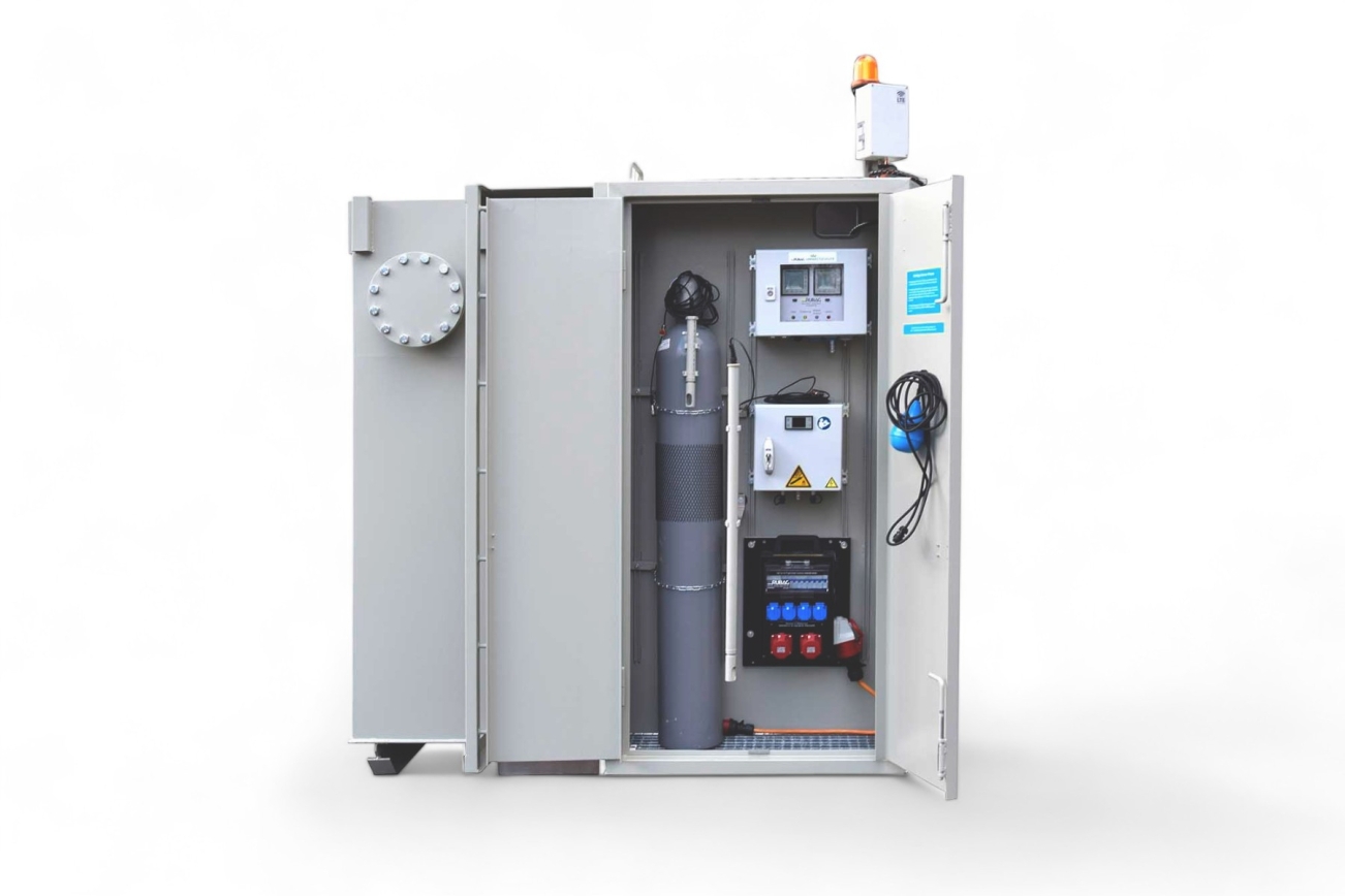 Getrennte Absetz- und Neutralisationszonen: Das 20 m3 Becken bietet maximale Flexibilität, da es situativ sowohl für das Absetzen, das Neutralisieren oder eine Kombination aus beiden Funktionen eingesetzt werden kann.