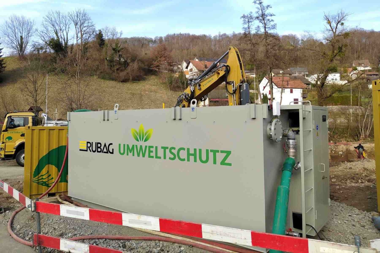 Dieses Becken ist ein kombiniertes Absetz- und Neutralisationsbecken mit einem Gesamtvolumen von 20 m3. Es eignet sich für die Aufbereitung grosser bis sehr grosser Mengen an Baustellenabwässer.