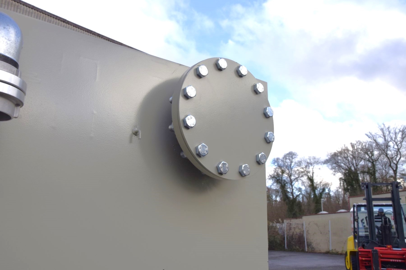 - Einlauf mit 2 x 3" Storz-Kupplung sowie 200 mm Flansch-Platte und integrierte Wasserberuhigungszone
