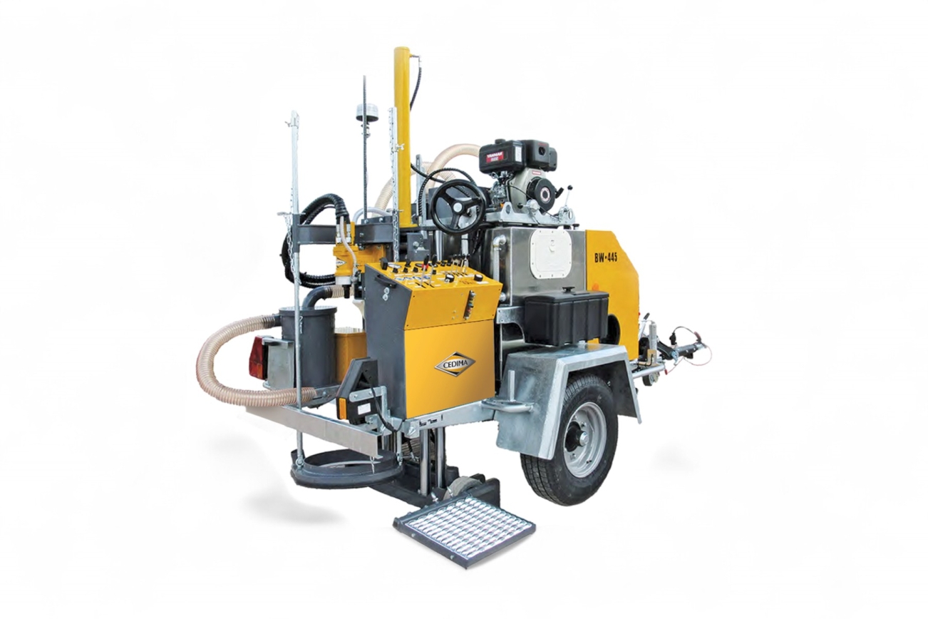 Die vollhydraulische Kernbohrmaschine BW-445 von CEDIMA ist die konsequente Weiterentwicklung des erfolgreichen Modells BW-443 – mit noch mehr Komfort, Leistung und zusätzlicher Ausstattung für den professionellen Einsatz im Straßenbau und Flugplatzbau.
