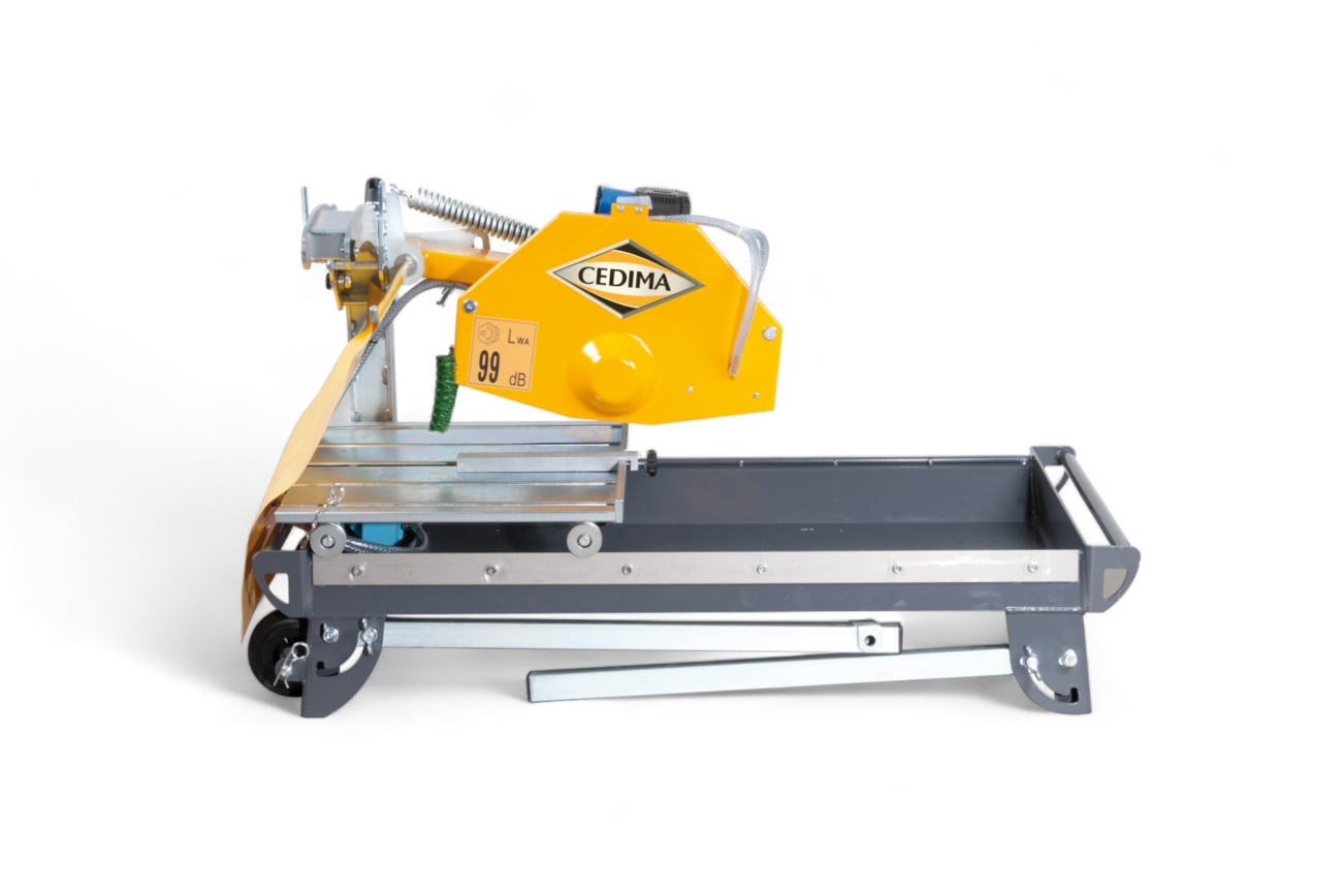 Diese Steinsäge punktet zudem mit hoher Transportfreundlichkeit durch klappbare Standfüsse, Transportrollen, Tragegriffe und Kranösen.