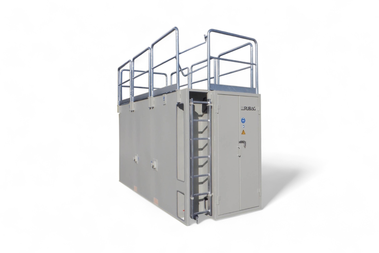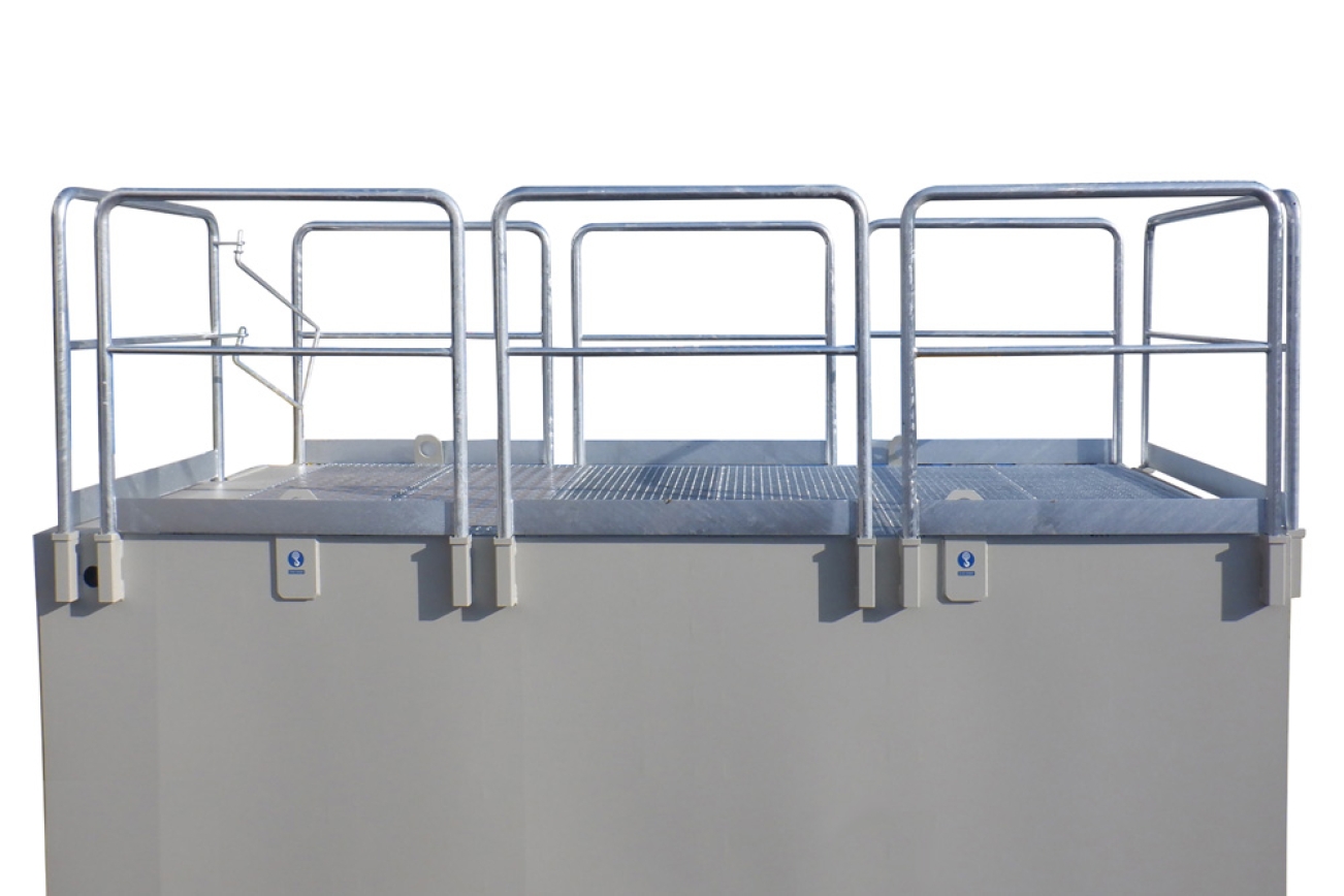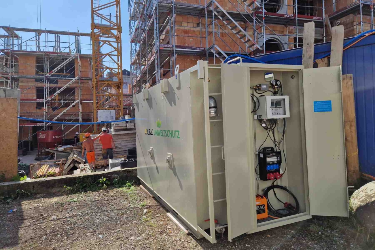 Optionaler Waschaufsatz: Bei Bedarf kann das 10 m3 Becken mit einem Waschaufsatz mit Gelände ergänzt werden, um Baugeräte zu reinigen.