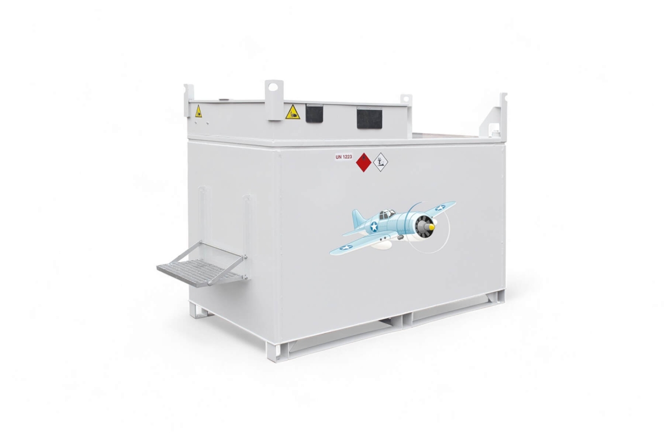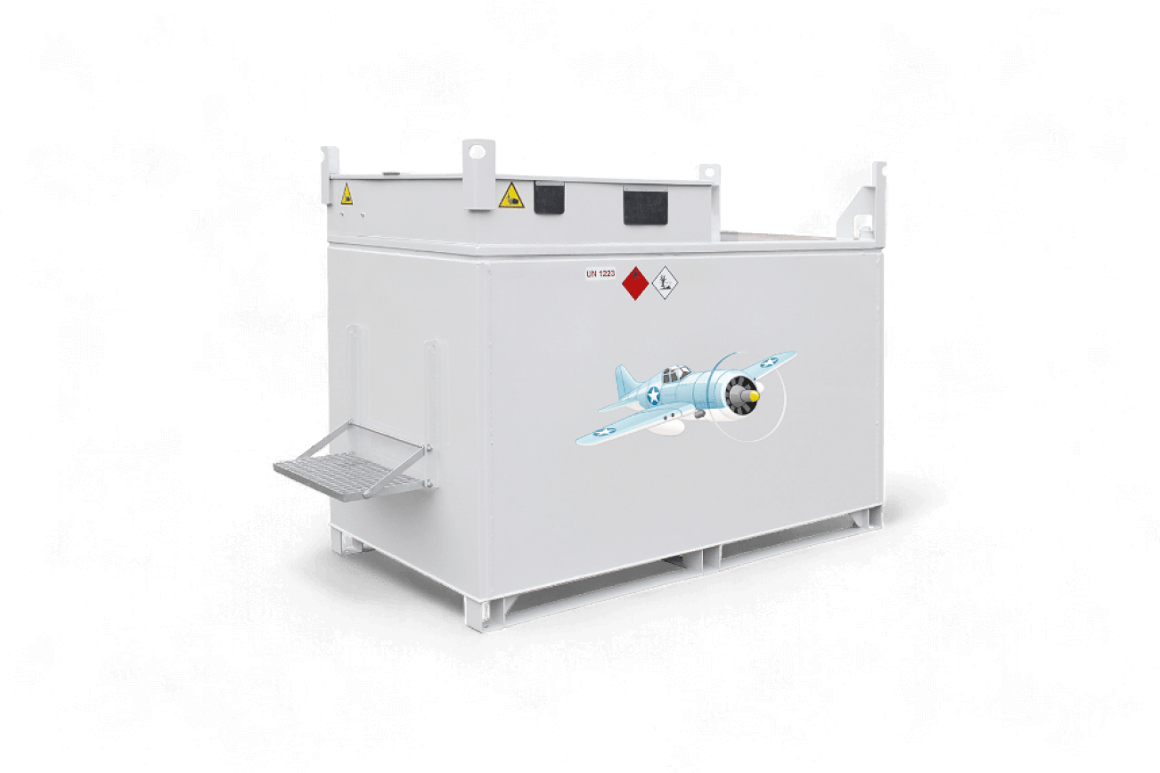 Unsere KUBUS Tankbehälter Flugfeld sind mit einem Innentank aus Edelstahl ausgestattet und daher speziell für den Transport und die Lagerung von Kerosin zugelassen. Die doppelwandigen IBC-Stahltanks können fest auf Flugfeldern zur Kerosin-Lagerung installiert oder mobil zur Betankung von Flugzeugen und Hubschraubern eingesetzt werden.