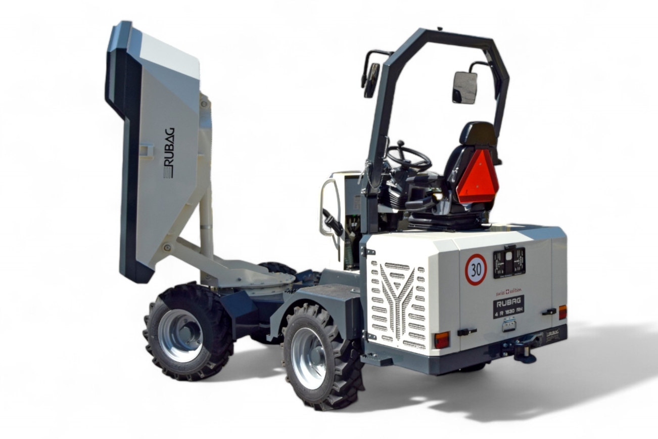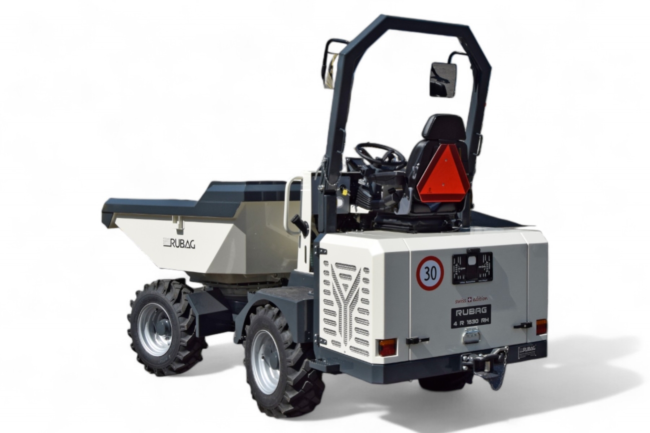 Ein perfekter Pneudumper für mittelgrosse Baustellen: Permanenter Allrad-Antrieb wie bei allen RUBAG Dumpern. Die 1600-Liter-Rundkippmulde bietet eine ausgezeichnete Nutzlast von über 3 Tonnen.