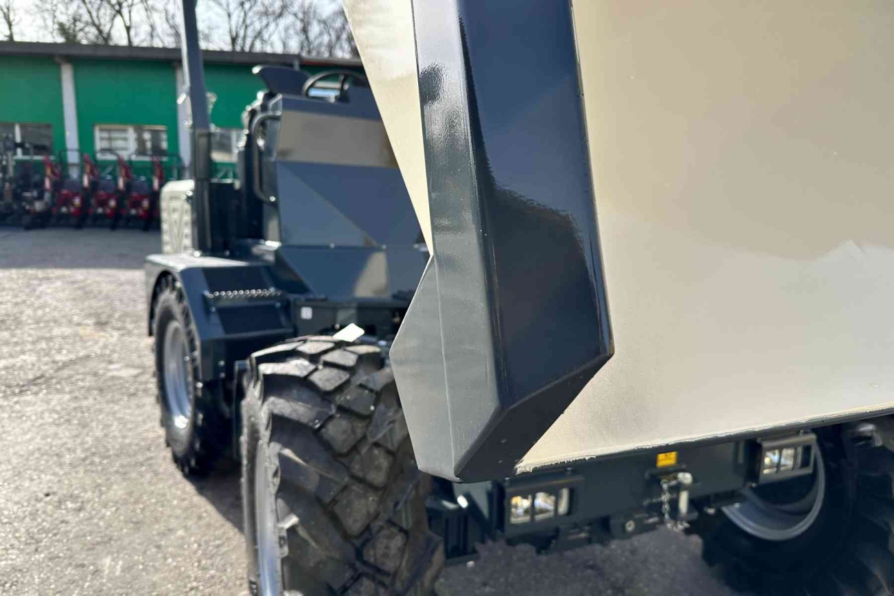 Dank seines permanenten Allradantriebs bietet dieser geländegängige Dumper eine herausragende Traktion, selbst auf schwierigem oder steilem Terrain. In Kombination mit dem robusten Knickpendelgelenk passt sich der Dumper mühelos den Herausforderungen des Geländes an und gewährleistet außergewöhnliche Stabilität. Der starke Antrieb sorgt zudem für eine beeindruckende Anhängelast hinten.
