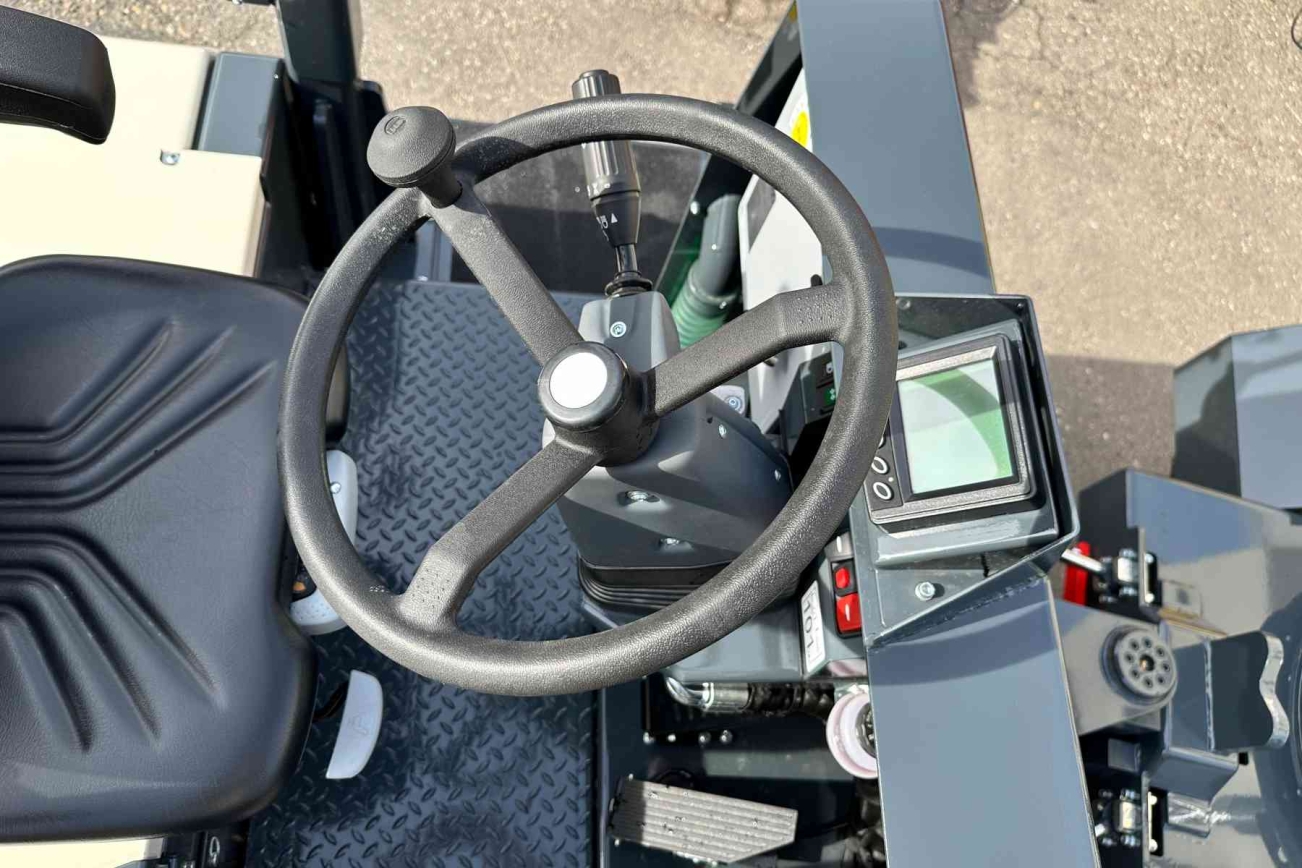 Der Sicherheitsbügel bietet dem Fahrer Schutz und lässt sich bei niedriger Durchfahrt oder für den Transport dank Gasdruckfedern einfach herunterklappen. Die hohe Sitzposition gewährleistet eine ausgezeichnete Rundumsicht, was die Sicherheit auf der Baustelle erheblich verbessert. Für zusätzlichen Komfort kann der Maschinist beidseitig ein- und aussteigen. Zudem ist die Mulde hinten mit einem erhöhten Muldenrand ausgestattet, der den Fahrer vor aufwirbelndem Material schützt.