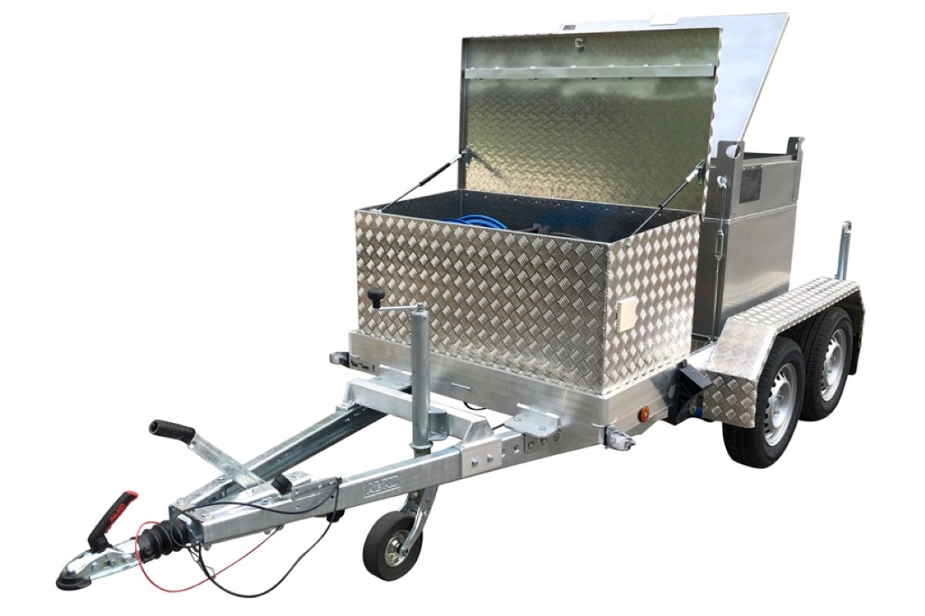 Dieser Tankanhänger hat standardmässig eine geräumige Box aus Alu-Riffelblech aufgebaut, in der Werkzeug, Schläuche oder ein AdBlue-Behälter versorgt werden kann.
