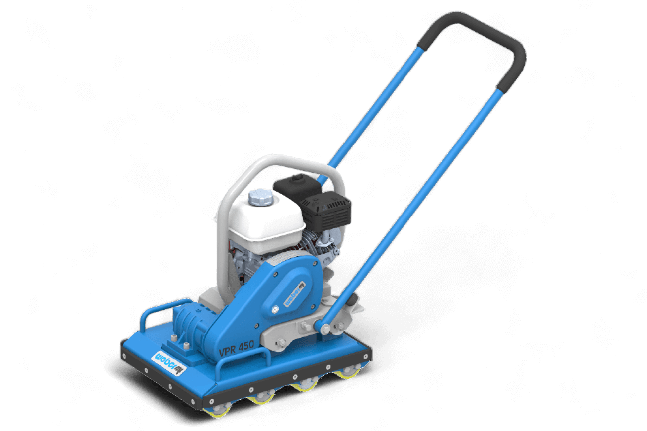 Rollen Sie Ihre Platten schonend ab; Der Rollenrüttler Typ VPR 450 wurde speziell für die anspruchsvollen Aufgaben beim Abrütteln von Pflasterflächen und Platten entwickelt. Der Rollenrüttler gleitet sanft über das Material und verhindert, dass Platten oder Pflastersteine verrutschen oder Ecken und Kanten beschädigt werden. Selbst empfindliche Betonplatten mit geringer Stärke können schonend in die Bettung gedrückt werden.