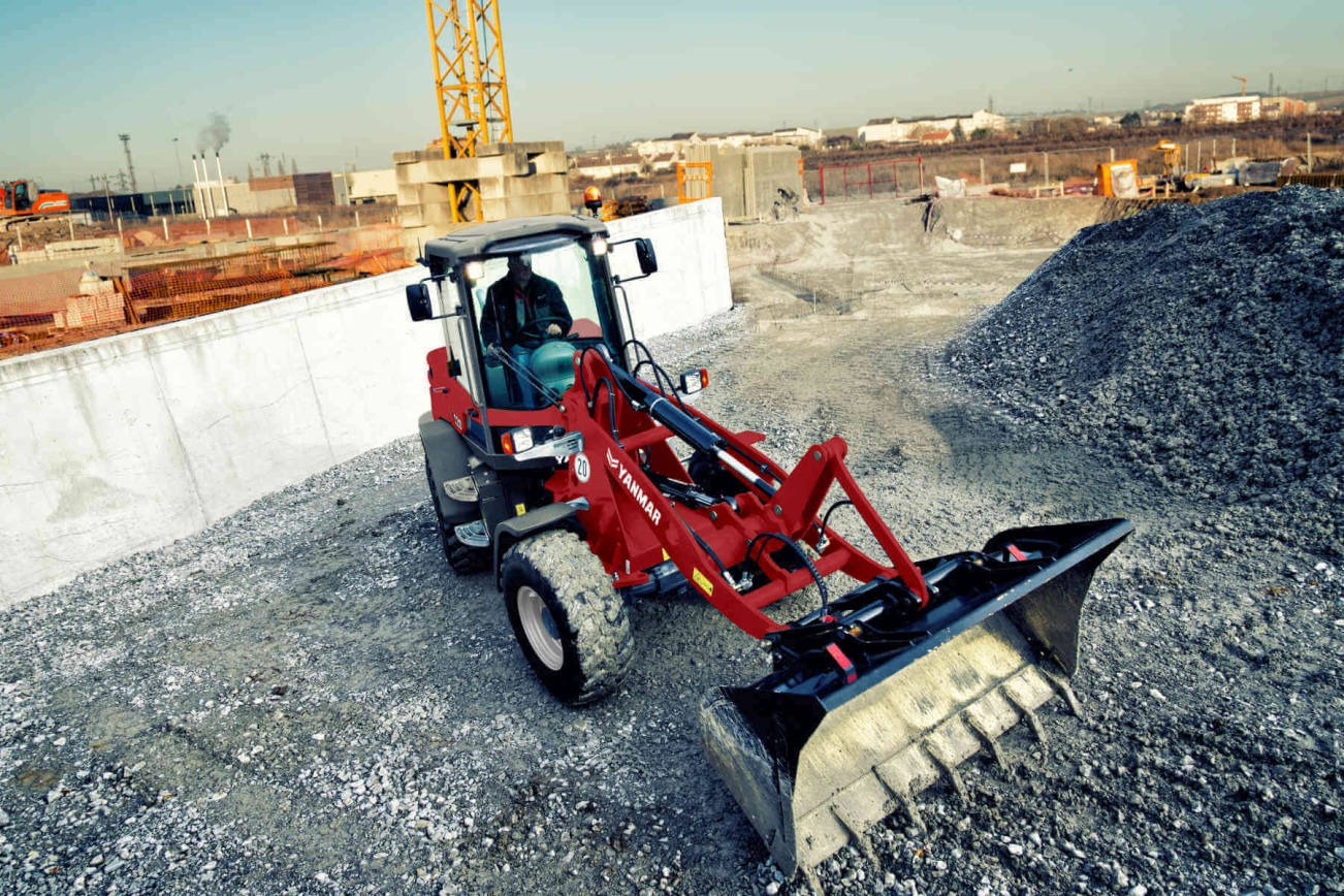 Der Radlader V120 von YANMAR verfügt über ein leistungsstarkes Hydrauliksystem mit hydrostatischer Antriebstechnik – Sie profitieren von reibungsloser Kraftentwicklung ohne Traktionsverlust. Das Knickgelenk sorgt für hervorragende Manövrierfähigkeit, während die oszillierende Hinterachse auch auf unebenem Gelände alle vier Räder konstant auf dem Boden hält. Mit Yanmars Parallelkinematiksystem können Sie eine Last schnell und präzise anheben, ohne permanent den Ladewinkel anpassen zu müssen.