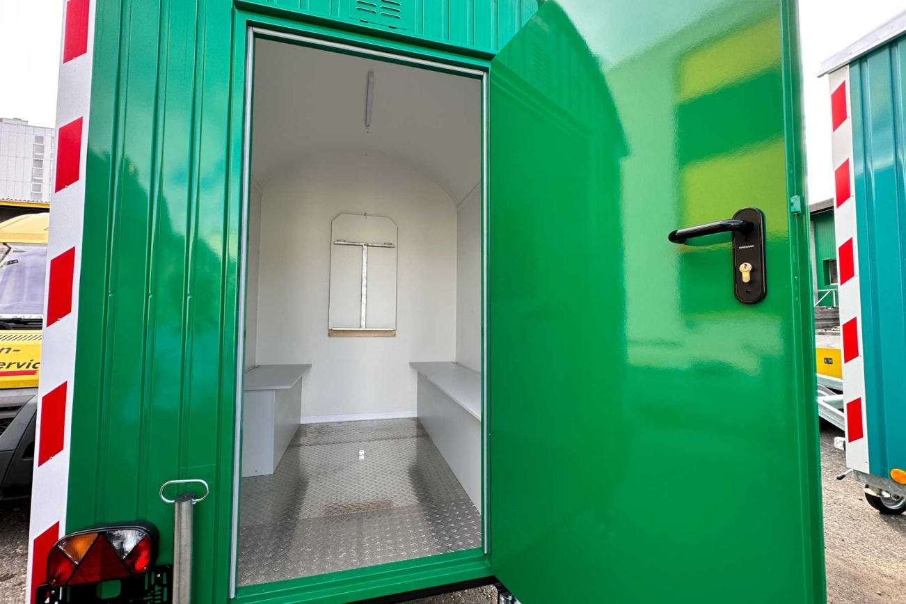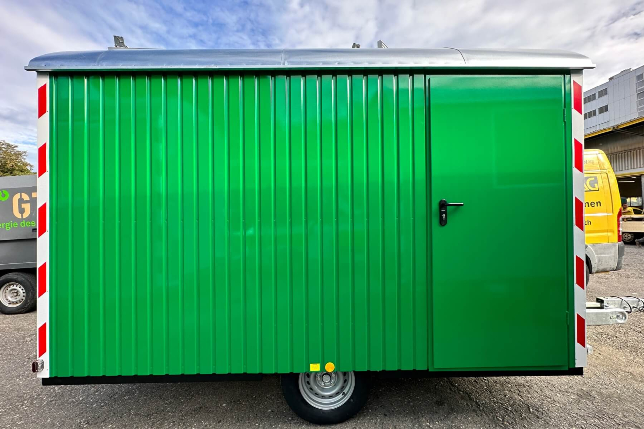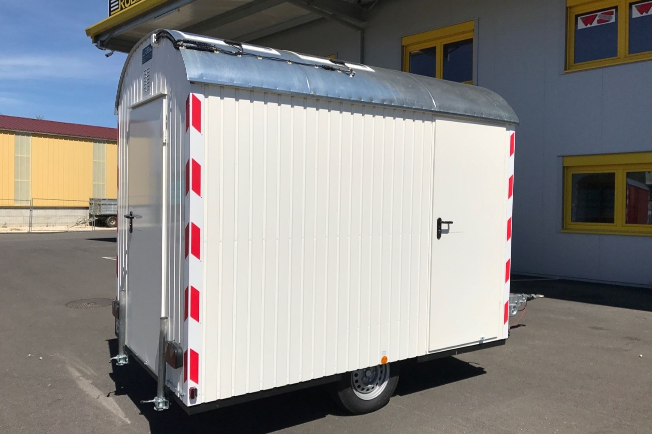 Avec ses 180 cm, cette roulotte de chantier est beaucoup plus étroite que les roulottes de chantier ordinaires. Cette remorque est donc parfaitement adaptée aux chantiers étroits, tout en offrant deux compartiments pratiques pour l'équipe et le matériel. Homologuée pour une charge maximale de 1,3 tonne à 100 km/h.