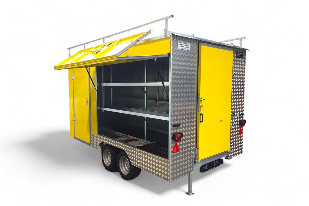 Publicité sur roues Les grandes surfaces publicitaires lisses et la porte de cette remorque à outils peuvent être peintes et étiquetées dans la couleur de votre choix et selon votre propre design. La remorque devient ainsi un ambassadeur efficace de votre marque.