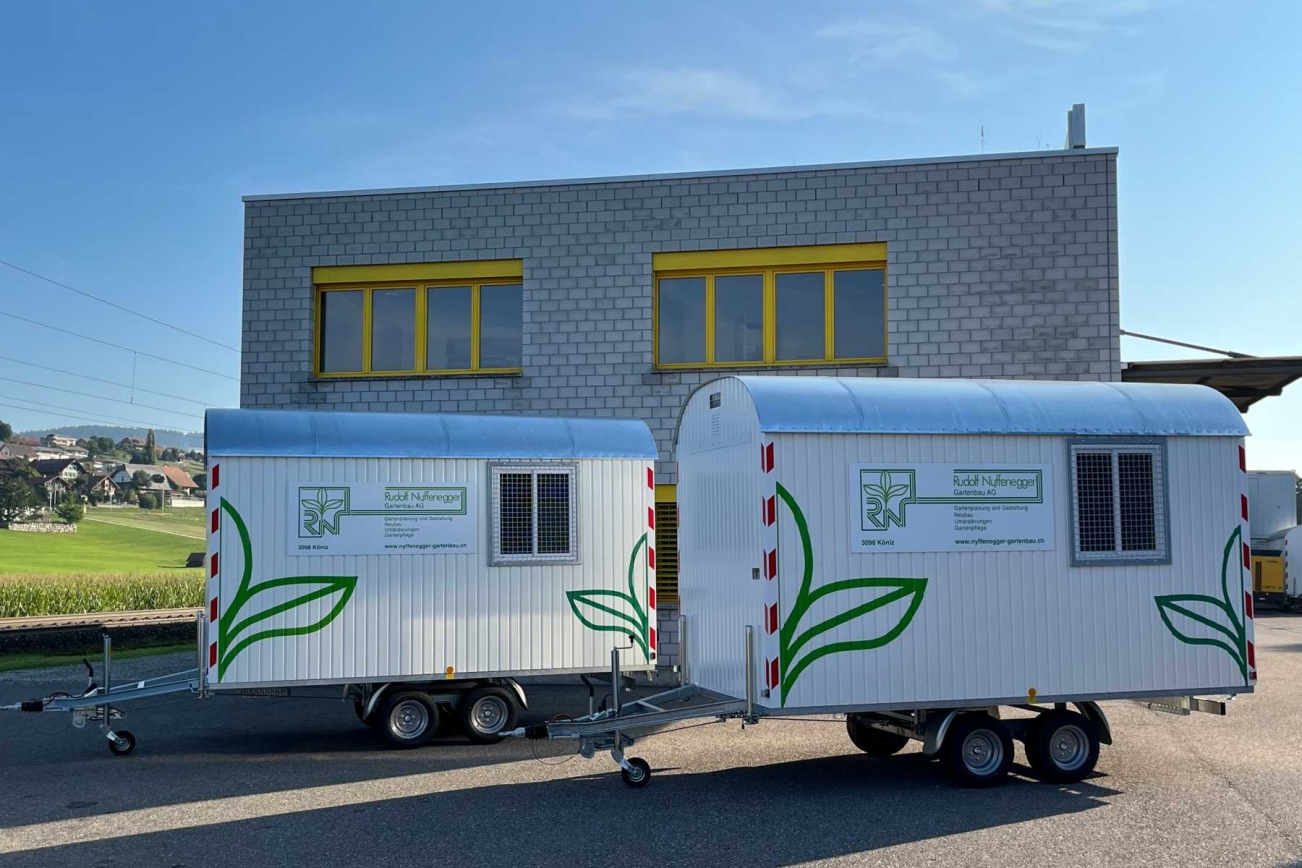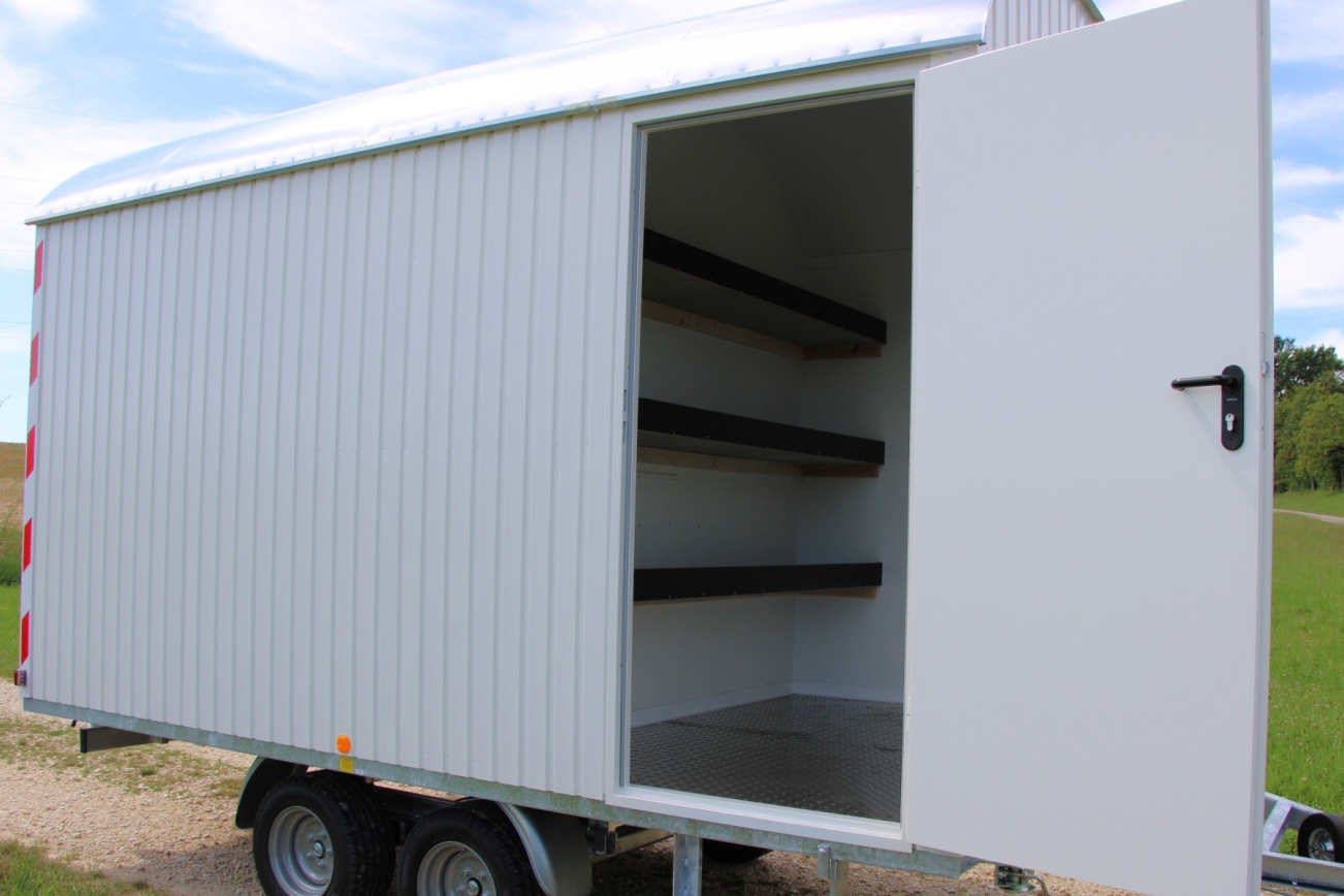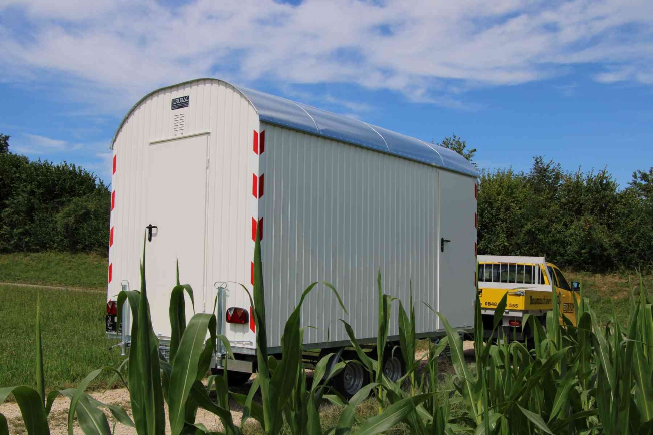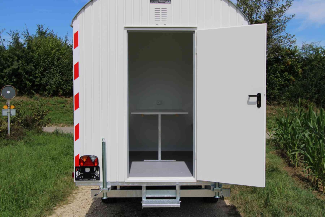 Nous proposons des remorques sur mesure. Contactez-nous pour concevoir ensemble la roulotte de chantier parfaitement adaptée à vos besoins. La remorque d'équipe présentée est un modèle standard. Notre vaste gamme de roulottes de chantier comprend de nombreux autres modèles et possibilités d'aménagement. Ce service comprend également la peinture selon vos souhaits (couleur ral), que nous nous ferons un plaisir de réaliser pour vous.