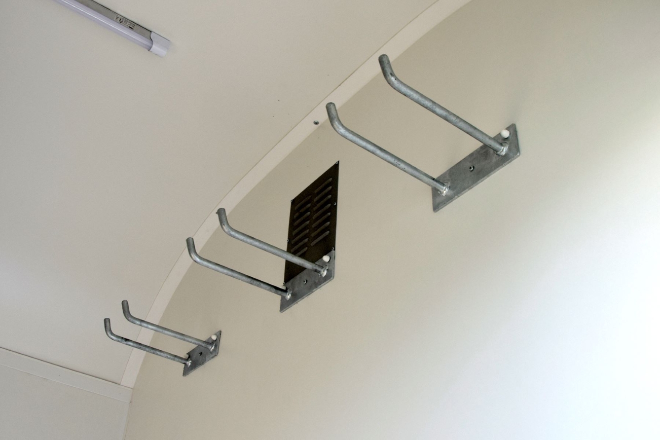 En plus de la salle de pause, la roulotte de chantier tandem de type EW dispose d'un compartiment de stockage séparé, déjà équipé d'étagères, de porte-outils, d'un éclairage et d'une prise électrique. Ce compartiment offre un espace de rangement optimal pour les matériaux et les outils, de sorte que tout soit toujours à portée de main et bien rangé.