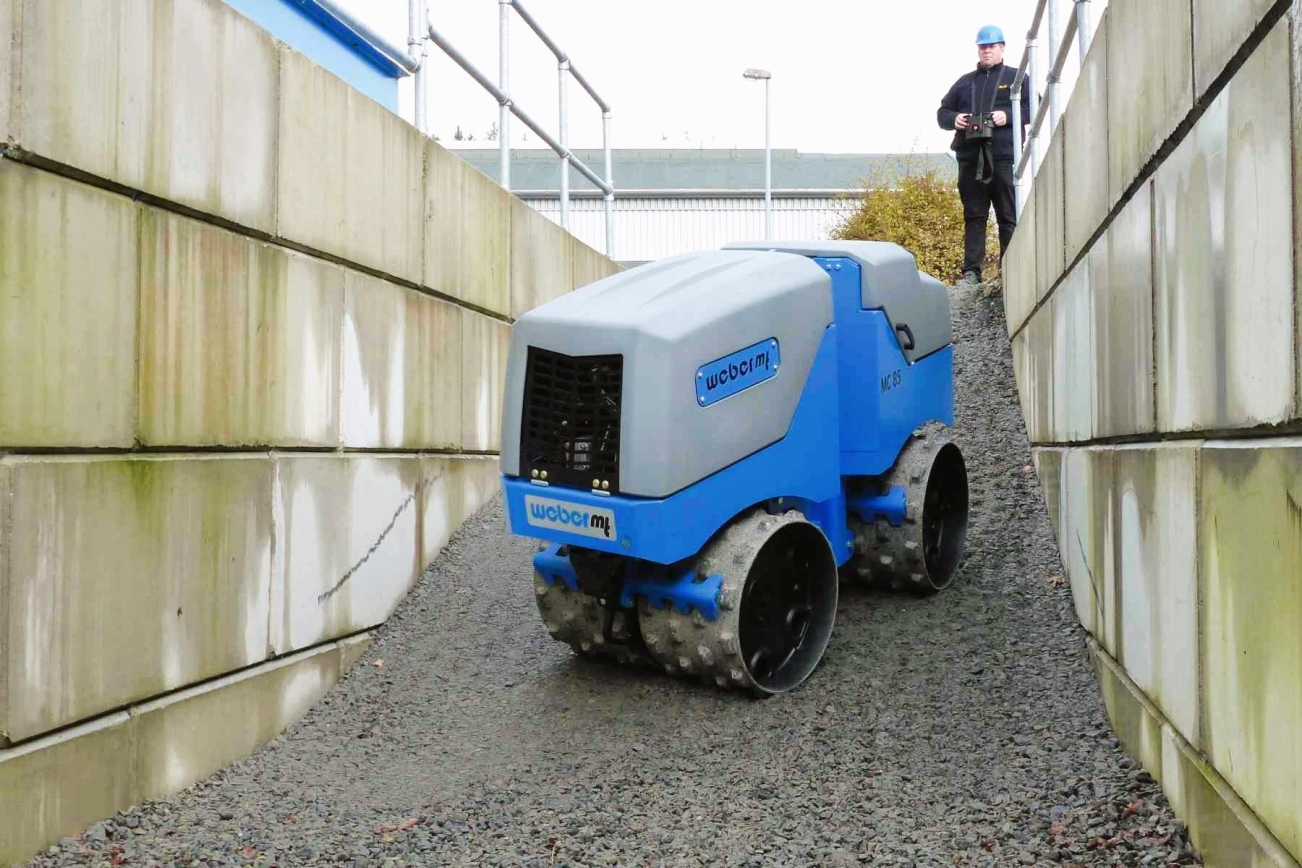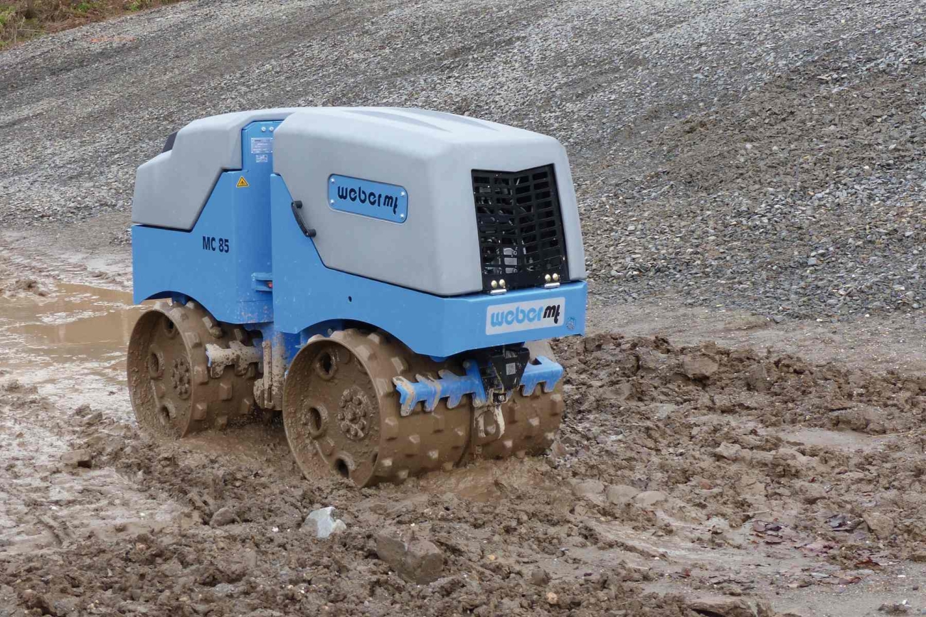 Le rouleau de tranchée télécommandé MC 85 de Weber est très performant pour le compactage des sols argileux difficiles, là où les rouleaux et compacteurs traditionnels atteignent leurs limites. Le rouleau articulé est non seulement très sûr, puissant et robuste, mais aussi économique à l'usage et extrêmement facile à utiliser.
