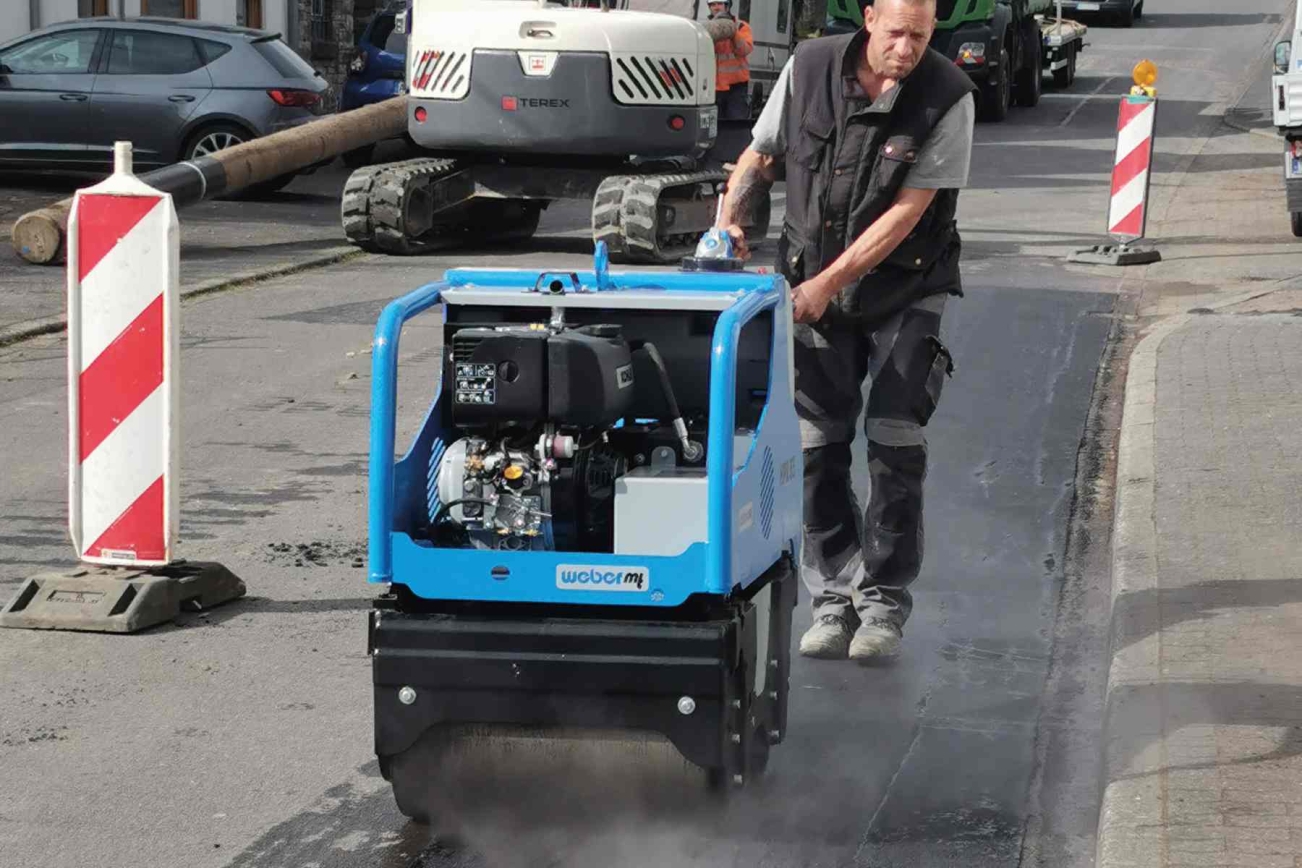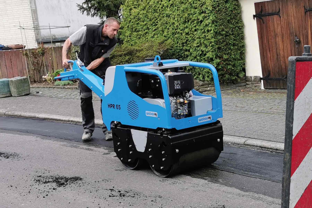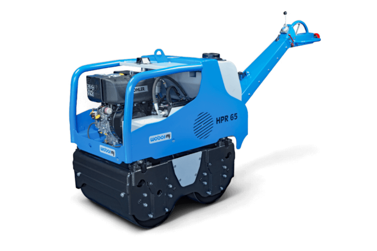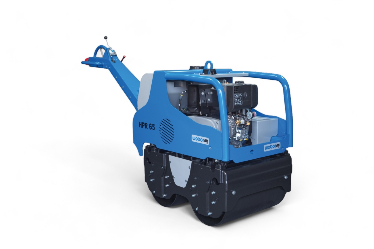 Rouleau duplex WEBER à guidage manuel avec une grande capacité de compactage et un moteur diesel avec démarrage électrique. Avec le réservoir d'eau d'une capacité de 70 litres, les longues interventions sont garanties.