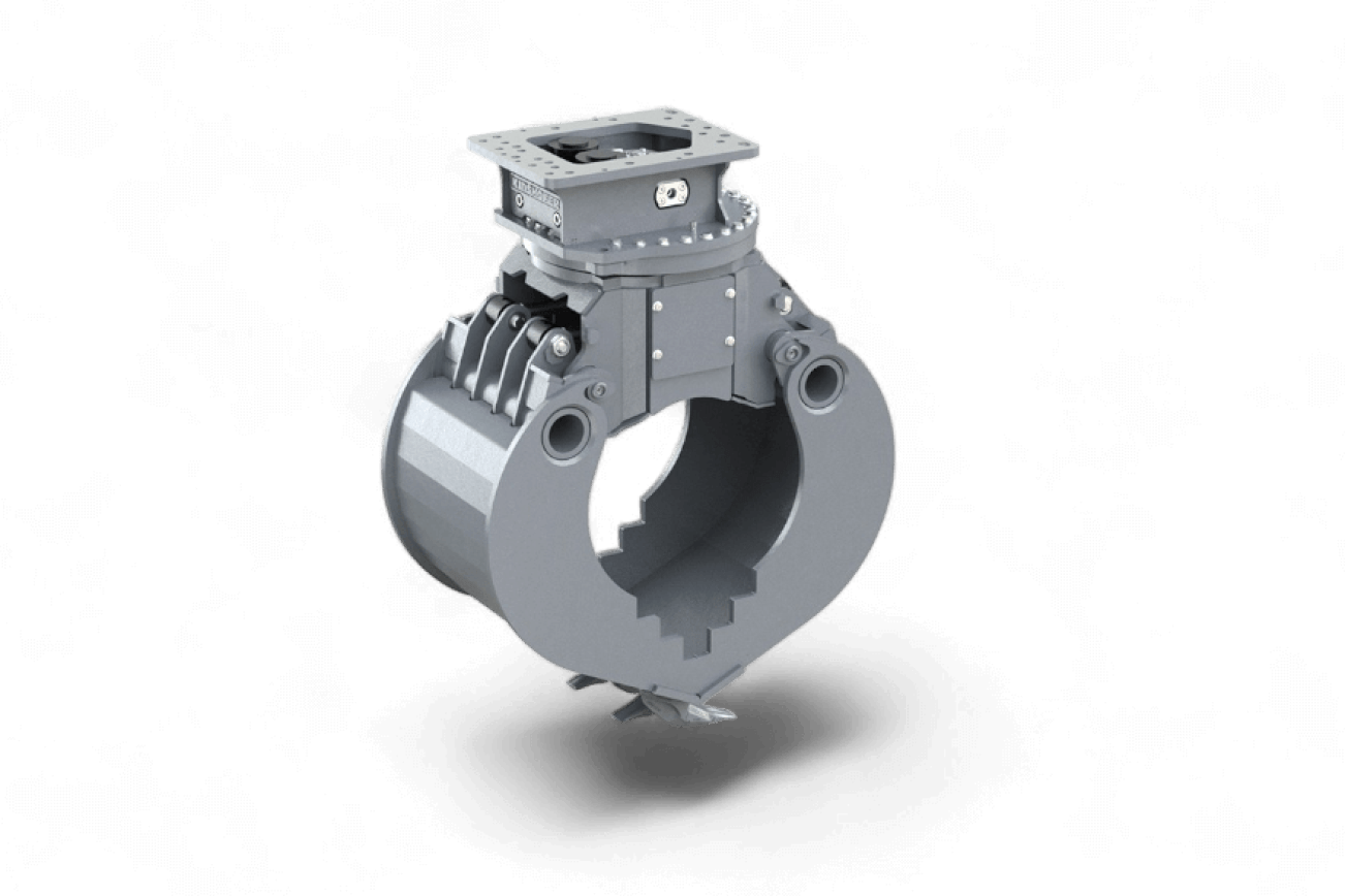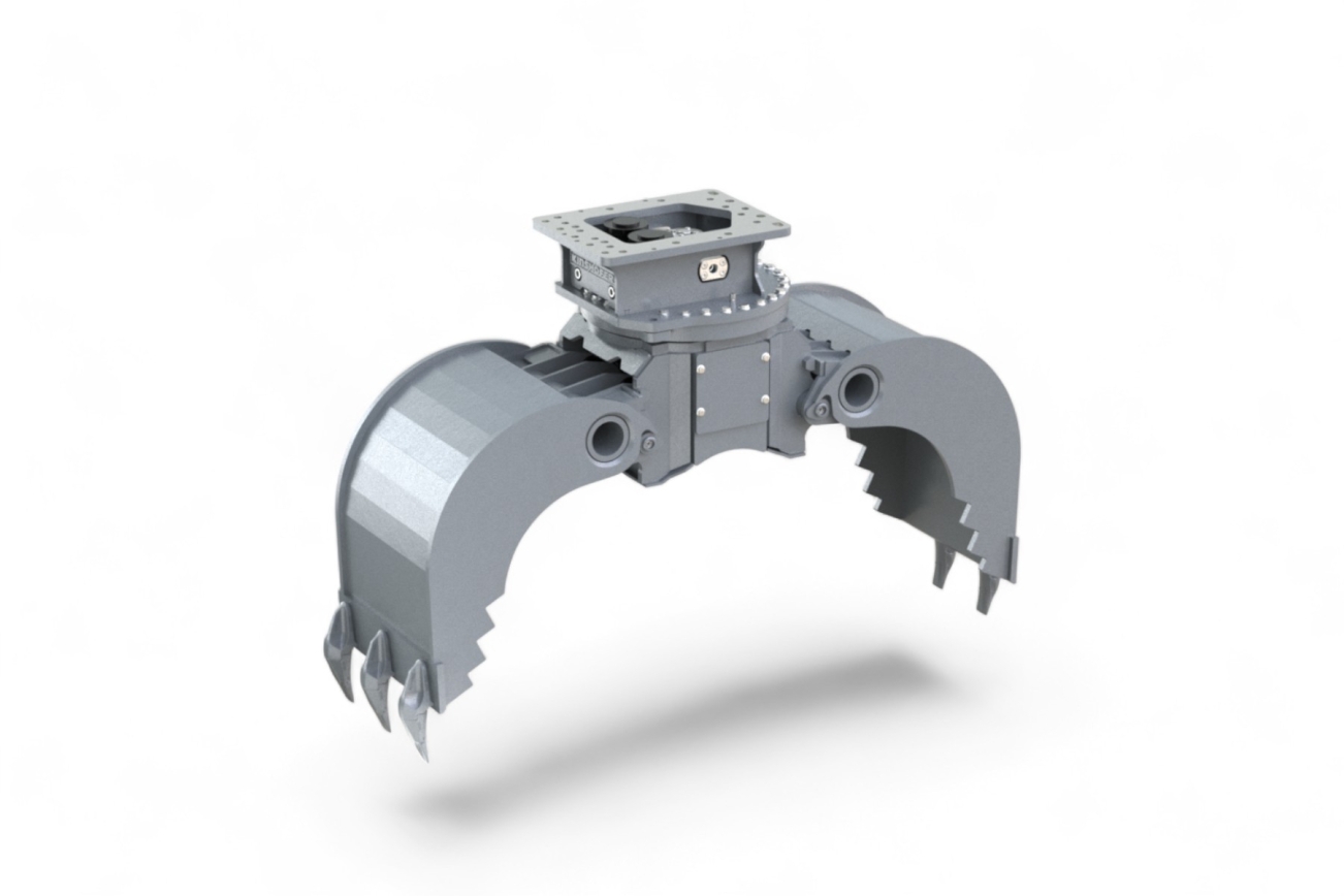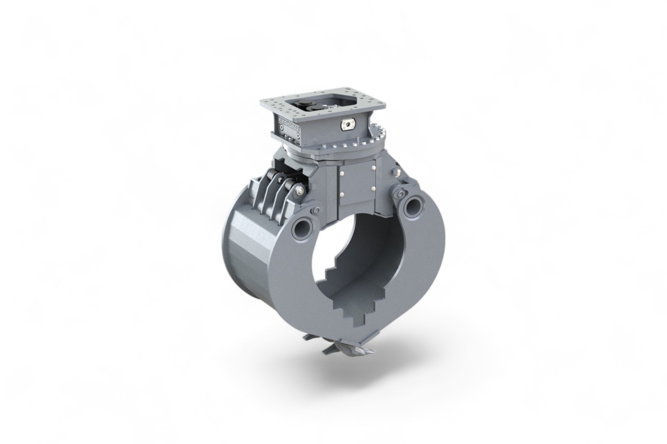 La robusta ralla a quattro punti completamente integrata con attacchi per tubi flessibili interni garantisce una trasmissione ottimale della potenza e previene i danni ai tubi flessibili. È possibile collegare facilmente un attacco rapido idraulico. Una valvola di scarico della pressione montata sulla flangia protegge inoltre dal sovraccarico.